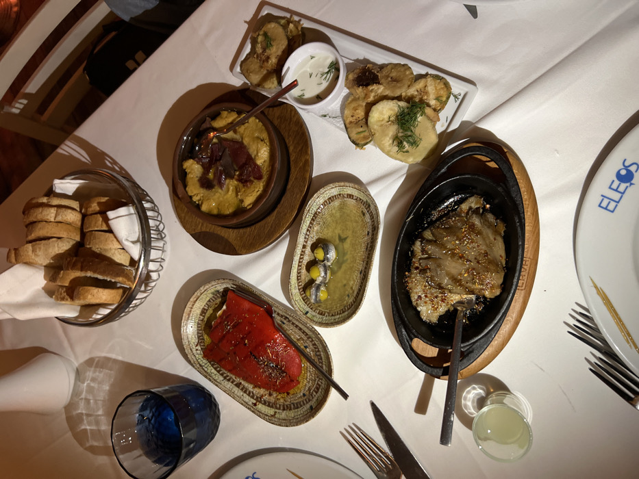 The scene depicts a dining table at Eleos Beyoğlu, located in Beyoğlu, Turkey