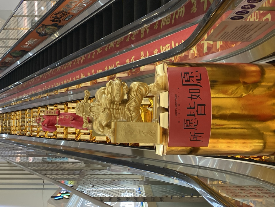 The image depicts a large-scale decorative display within a shopping mall in Guta, China