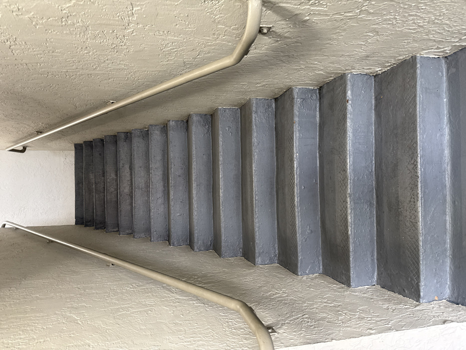 An angled perspective captures a descending stairwell