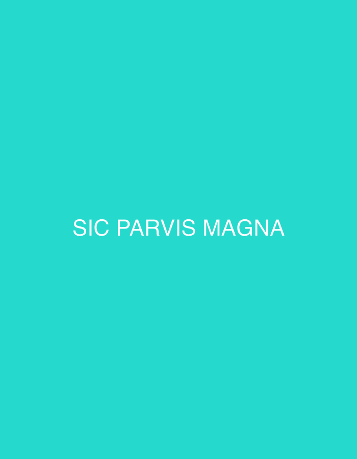 The image displays a uniform, solid cyan background. Centered horizontally and vertically within the frame is the phrase "SIC PARVIS MAGNA" rendered in white, uppercase sans-serif text. No individuals, additional subjects, objects beyond the text, actions, or interactions are present. The environment consists solely of the colored background. The image provides no specific indicators of a geographic location within Anápolis, Brazil, or any other identifiable city or region.
