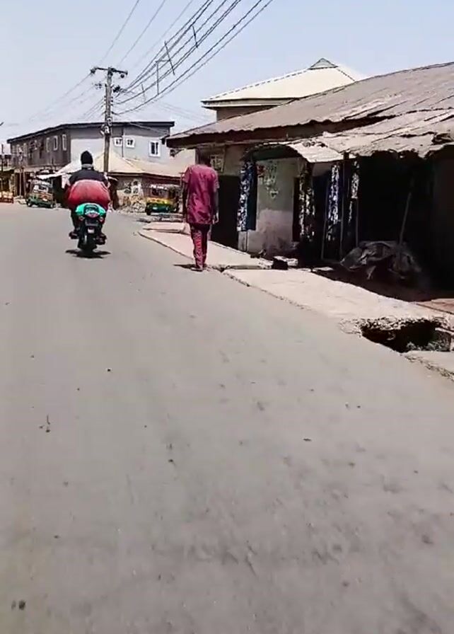 A video shows a road in a low-income area on a bright day