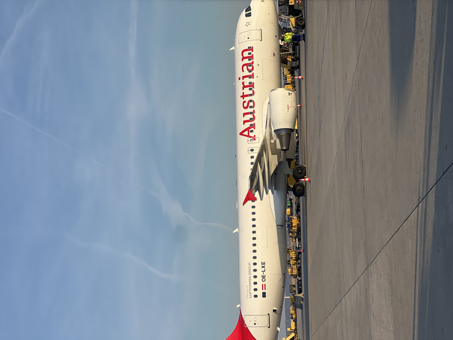 - "A white Austrian Airlines Airbus A320-200 aircraft, registration OE-LXE, is parked on a concrete tarmac at Vienna International Airport in Schwechat, Austria, under a clear blue sky with visible contrails" by FM-CMDbi2, licensed under CC BY 4.0