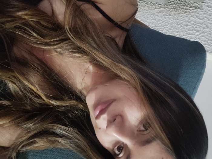 - "A woman with long, highlighted brown hair lies on a teal-colored cushion" by FM-cpNUm2, licensed under CC BY 4.0