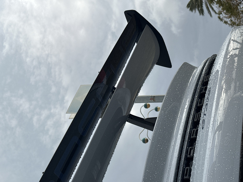 - "The image displays a close-up, low-angle view of the rear of a white Porsche GT3 RS sports car, located outdoors in Yakum, Israel" by FM-EXOi83, licensed under CC BY 4.0