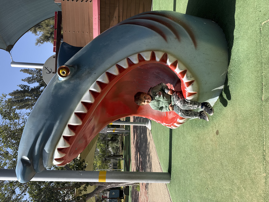 - "An outdoor playground scene in Givatayim, Israel, features a young child seated within the open mouth of a large, light blue shark-shaped slide" by FM-8PIao1, licensed under CC BY 4.0