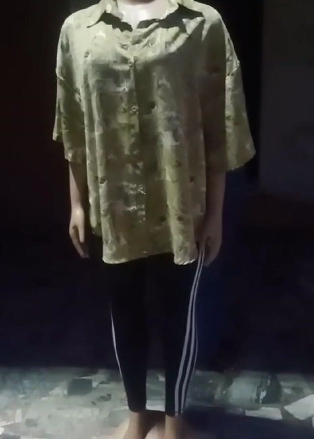 - "A mannequin is wearing a greenish-yellow patterned button-up shirt and black leggings with three white stripes down the sides" by FM-HDrtl2, licensed under CC BY 4.0