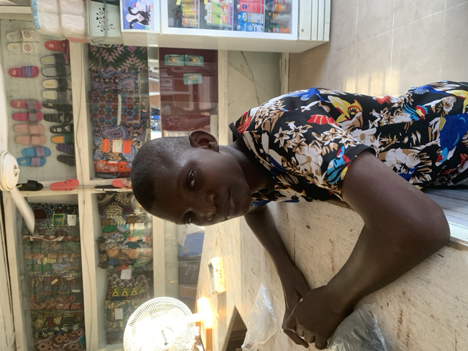 The image depicts an indoor commercial setting in Gwagwarwa, Nigeria