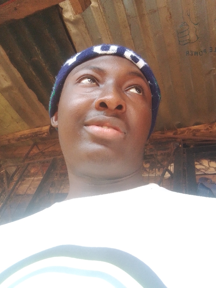 - "A close-up, low-angle portrait depicts an individual with dark skin, wearing a blue, white, and green striped beanie and a white t-shirt" by FM-qCn6z1, licensed under CC BY 4.0