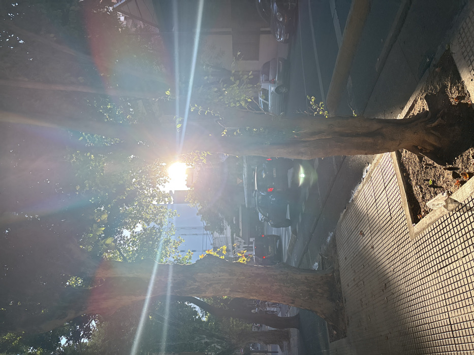 - "Sunlight pierces through tree branches lining a street, casting bright rays" by FM-iMZ7r2, licensed under CC BY 4.0