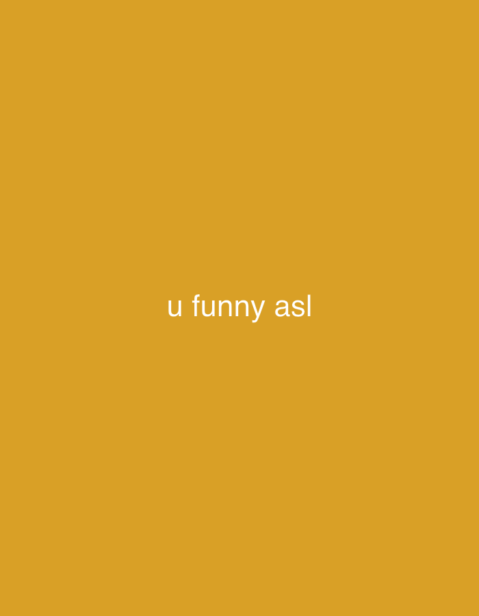 A solid mustard-colored background fills the frame. Centered, plain white text reads "u funny asl." The text is simple and unadorned, contrasting against the warmth of the background. There are no other visual elements or distractions.