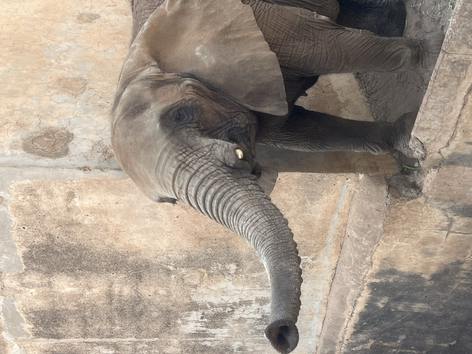 - "An elephant, viewed from below, rests its legs upon a concrete structure" by FM-kZ5TK2, licensed under CC BY 4.0