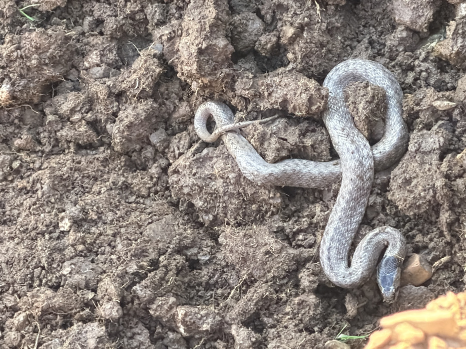 - "A light gray snake coils on dark, clumpy soil" by FM-vA9lX2, licensed under CC BY 4.0