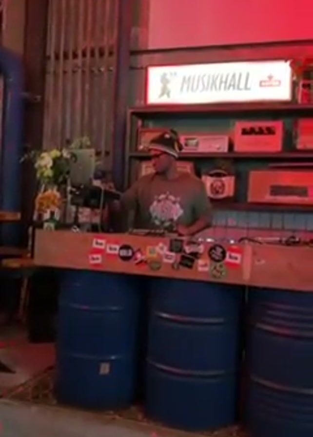 A medium shot shows a man DJing at a venue called "MUSIKHALL"