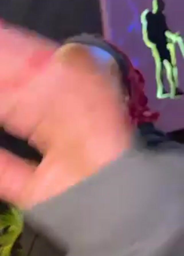 The video features a woman with red braids, a black headband, and red painted fingernails. She is wearing a black hoodie and is standing in front of a sign that reads "Explore LOUNGE." The background includes greenery and dim lighting. The woman is gesturing with her hands while speaking. The camera moves slightly as she talks.