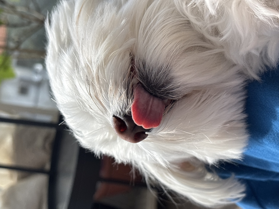 - "The image displays a close-up, semi-profile view of a small, white, long-haired canid, consistent with a Maltese-type breed, positioned facing right" by FM-tBKie2, licensed under CC BY 4.0