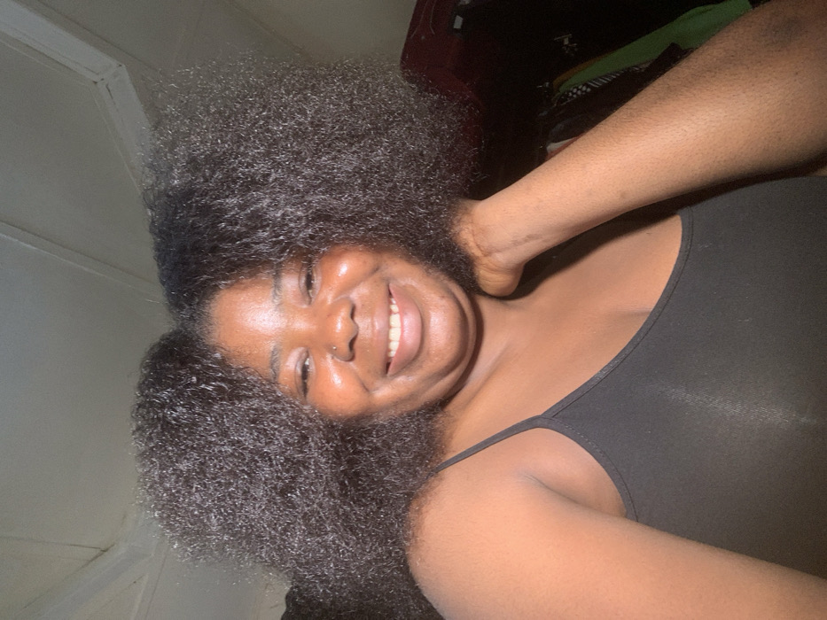 - "A smiling dark-skinned woman with curly black hair, a nose piercing, and a black tank top is shown" by FM-s8X662, licensed under CC BY 4.0