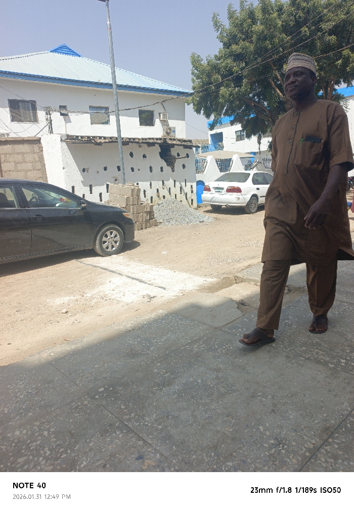 The scene is an outdoor, daytime view in Kofar Ruwa, Nigeria, under clear skies with strong sunlight