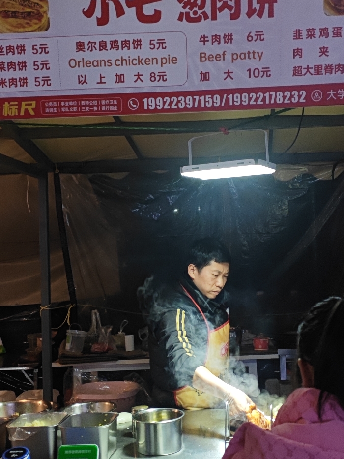 This image depicts a food stall operating at night in Shapingba District, China
