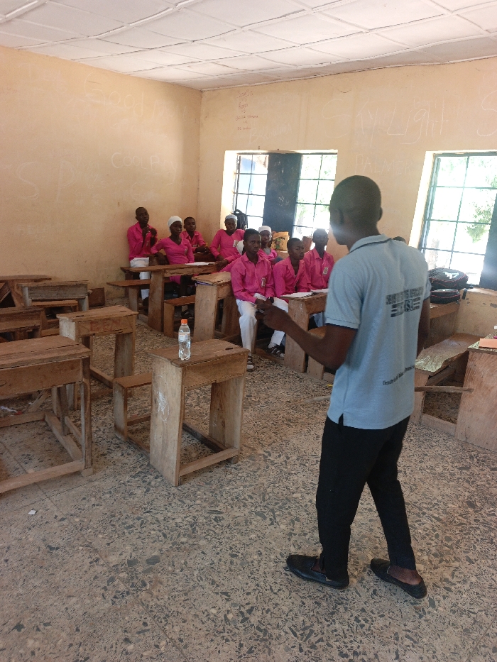 The image displays a classroom interior located in Mada, Nigeria