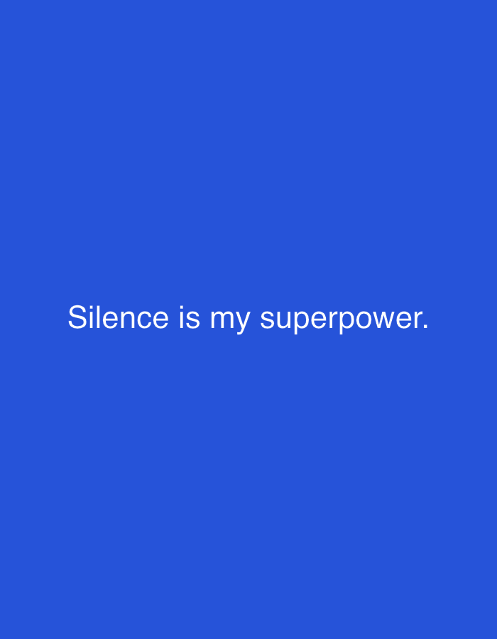 The image displays a digital graphic with a solid royal blue background. Centered on this background, white sans-serif text reads: "Silence is my superpower." No people, physical objects, discernible actions, interactions, or environmental features of a specific location are depicted within the visual content of this graphic, presented in the context of Zango-ndaji, Nigeria.