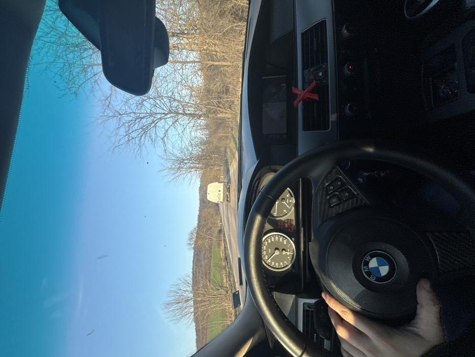 - "The image provides a first-person view from the driver's seat of a BMW E60 series vehicle, traveling on a paved rural road near Erden, Bulgaria" by FM-1ttN12, licensed under CC BY 4.0