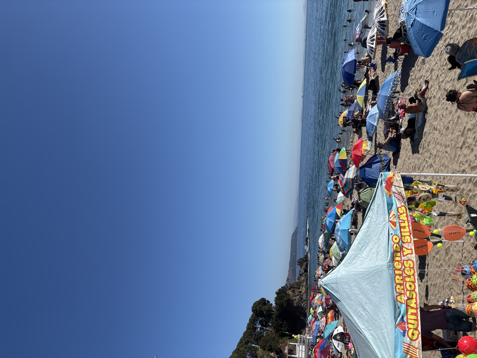 - "This image depicts a crowded public beach in Tomé, Chile, under a clear, bright blue sky" by FM-CB7hJ2, licensed under CC BY 4.0