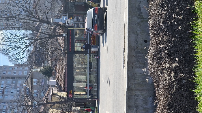 The image displays an outdoor urban scene in Dobrich, Bulgaria, under bright daylight conditions