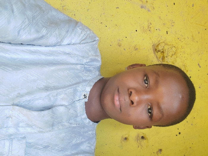A young male individual, appearing to be a child or adolescent, is centered in a medium close-up portrait