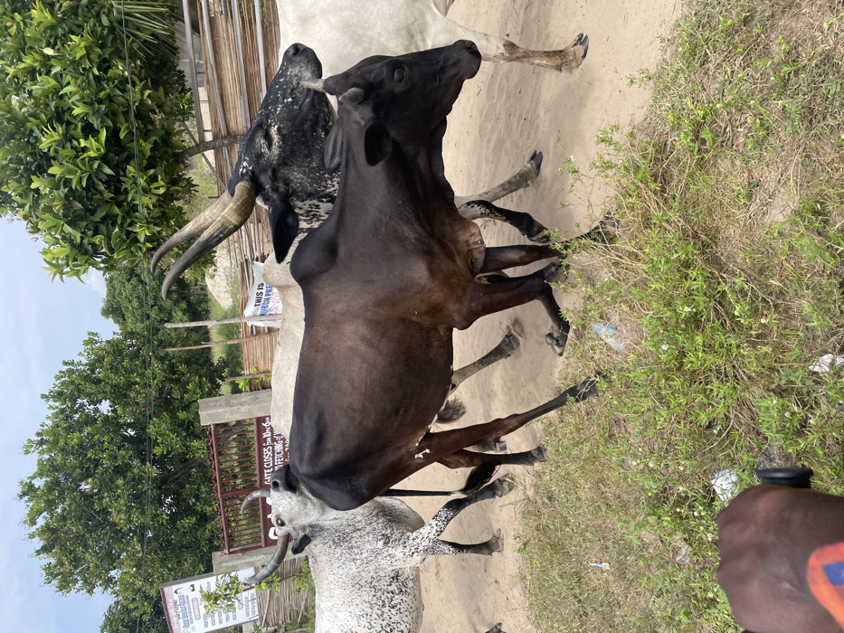 - "The image depicts a rural scene in Igbologun, Nigeria, featuring a group of zebu-type cattle moving along an unpaved, sandy path under a hazy sky" by FM-zKIcH2, licensed under CC BY 4.0