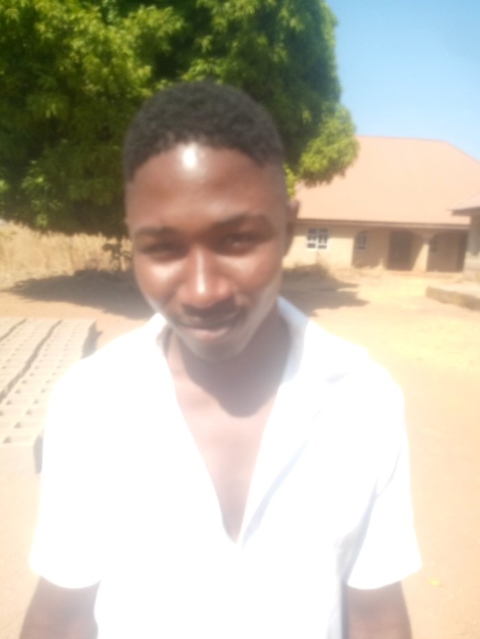 An outdoor scene in Agban, Nigeria, depicts a young Black male in the foreground, facing the camera with a slight smile