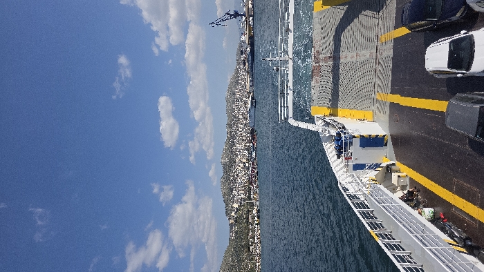 - "The image depicts a maritime scene from the upper deck of a vehicle ferry under a bright, partly cloudy blue sky" by FM-5qGt62, licensed under CC BY 4.0