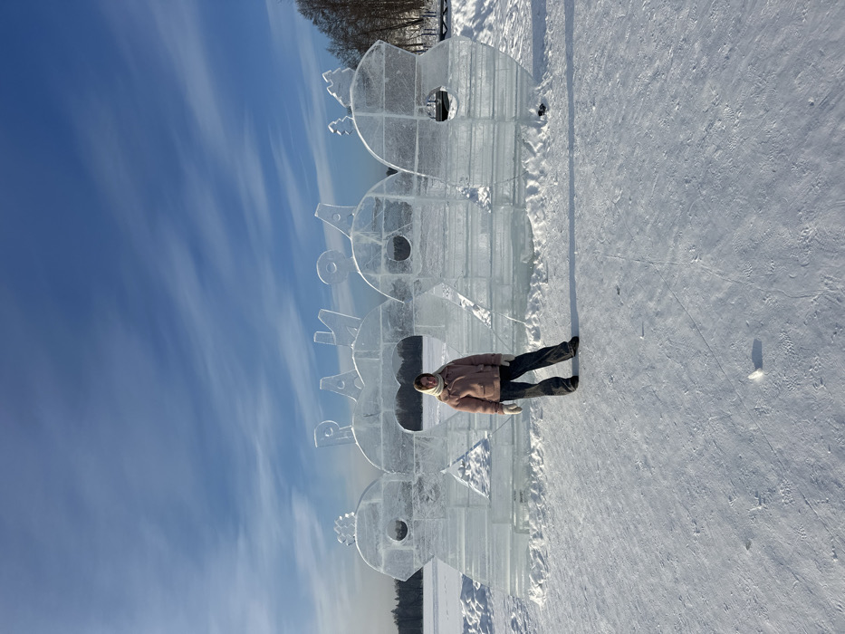 - "A single female individual stands centrally before a large, multi-part ice sculpture on a frozen, snow-covered surface under a clear blue sky with sparse cirrus clouds" by FM-jBHPC3, licensed under CC BY 4.0