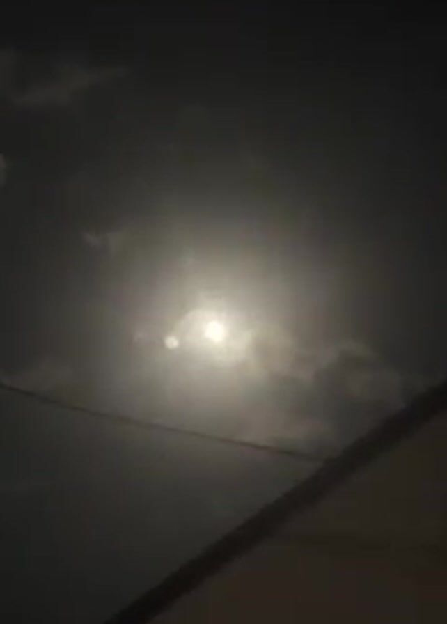 A video shows a nighttime sky with a bright moon obscured by some clouds