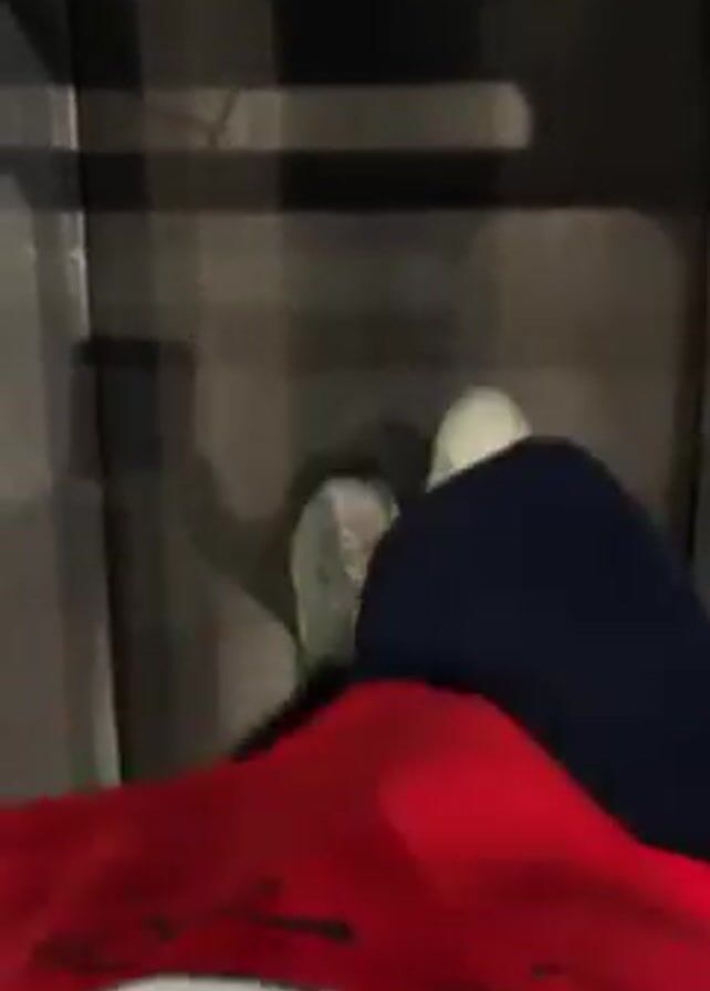 A person is walking on a treadmill