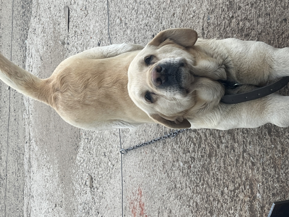 - "A cream-colored Labrador Retriever is captured mid-stretch in an outdoor setting in Kazanlak, Bulgaria" by FM-XfSux1, licensed under CC BY 4.0