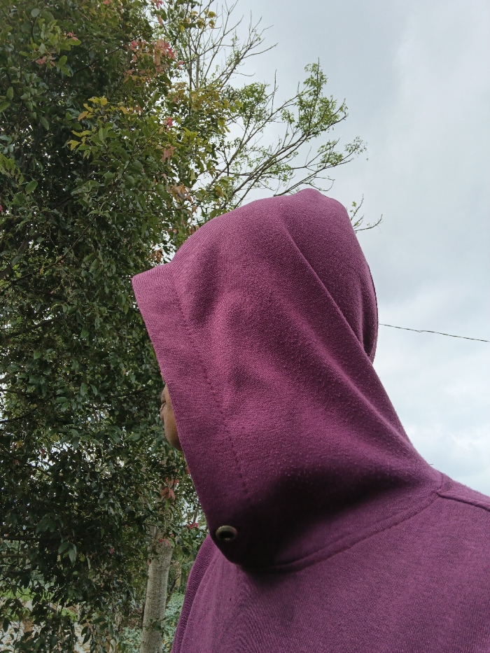 - "A person wearing a hooded, maroon sweatshirt stands outdoors" by FM-8Yrvl1, licensed under CC BY 4.0