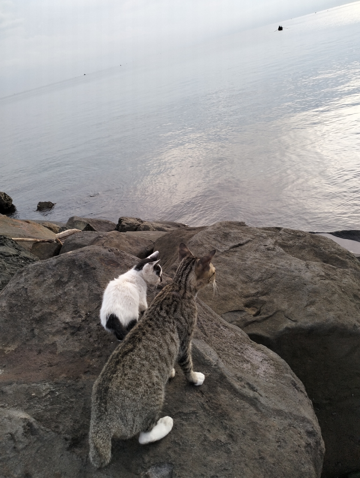 - "Two cats stand on large rocks by the sea" by FM-sAcf03, licensed under CC BY 4.0