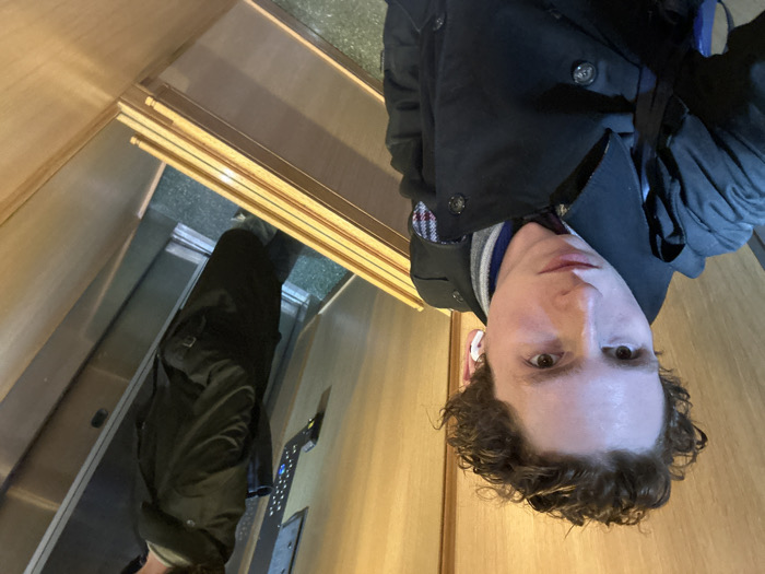 young male individual taking a selfie inside an elevator