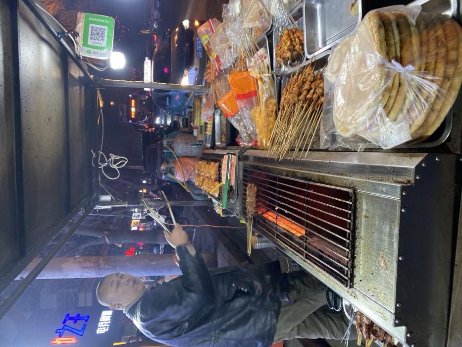 - "An outdoor street food vendor operates a mobile grill cart at night in Zhongtun, China" by FM-7sf2h2, licensed under CC BY 4.0