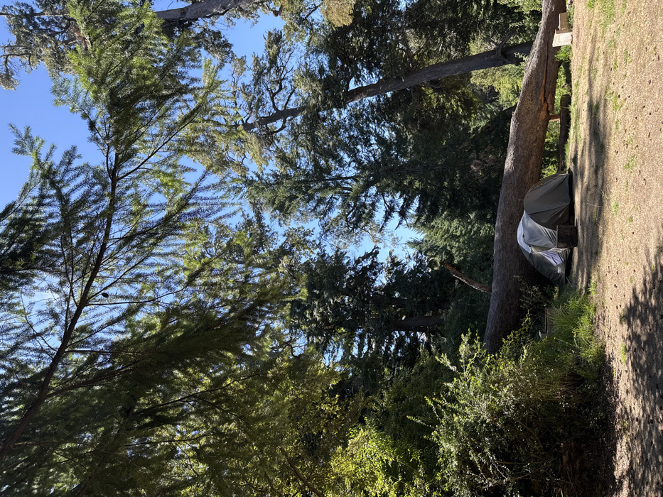 - "A tent sits nestled against a large fallen tree in a wooded area" by FM-AzJ7y1, licensed under CC BY 4.0