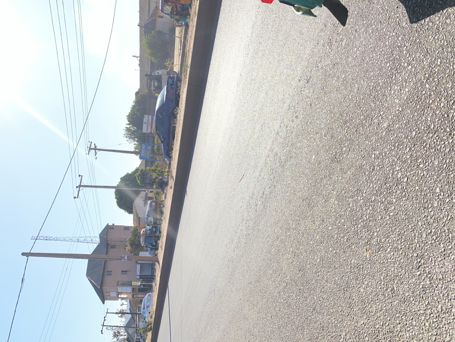 This image depicts a roadside scene in Bukuru, Nigeria, under clear, bright daylight