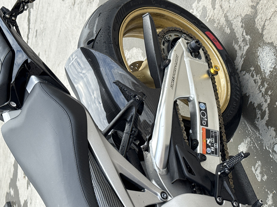 - "The image displays a detailed, low-angle view of the rear section of a sport motorcycle, parked outdoors on a concrete surface identified as being in Varna, Bulgaria" by FM-wRUHr1, licensed under CC BY 4.0