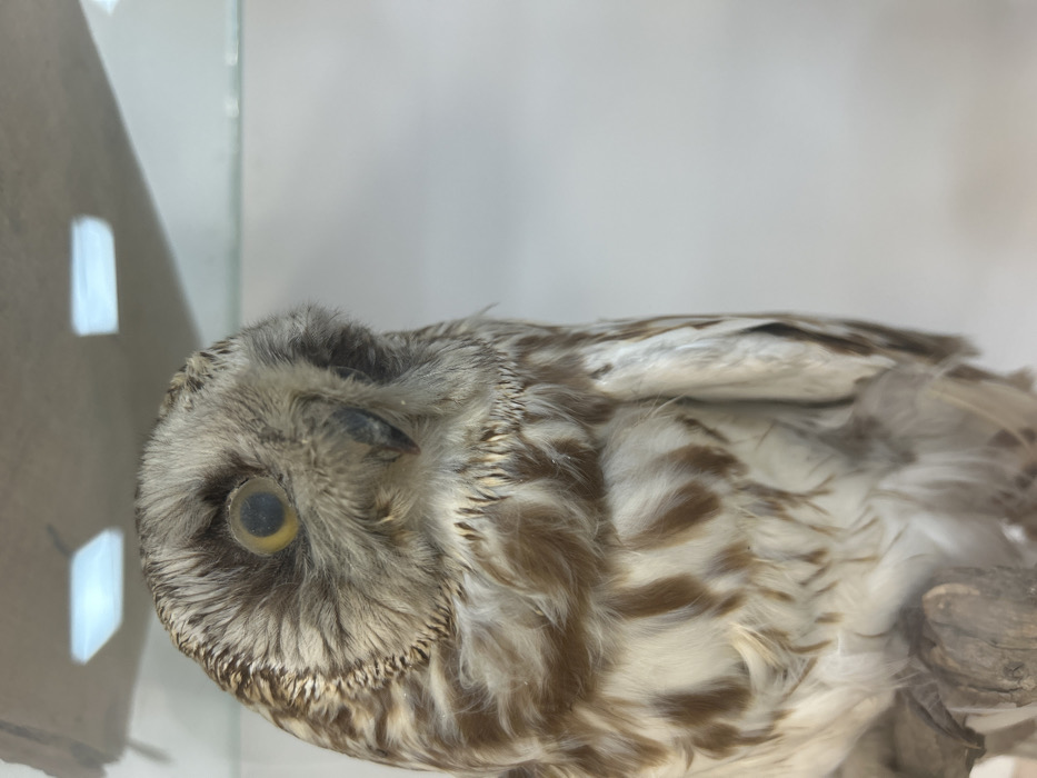 - "A taxidermied owl is depicted in a close-up, three-quarter view, positioned facing slightly right, within a display case in Svilengrad, Bulgaria" by FM-VmqAf1, licensed under CC BY 4.0