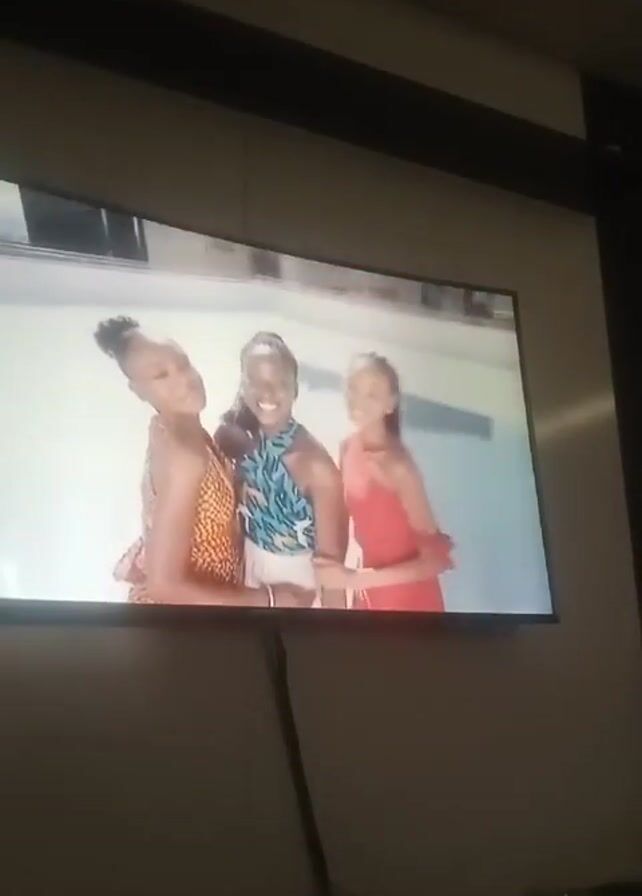 n advertisement for Nivea Nourishing Cocoa Lotion. The commercial begins with three women standing together. Then the camera angle shifts to focus on a woman standing with a bottle of the lotion, which then rotates to show the product. The woman then holds the bottle up and smiles while applying it to her arm.