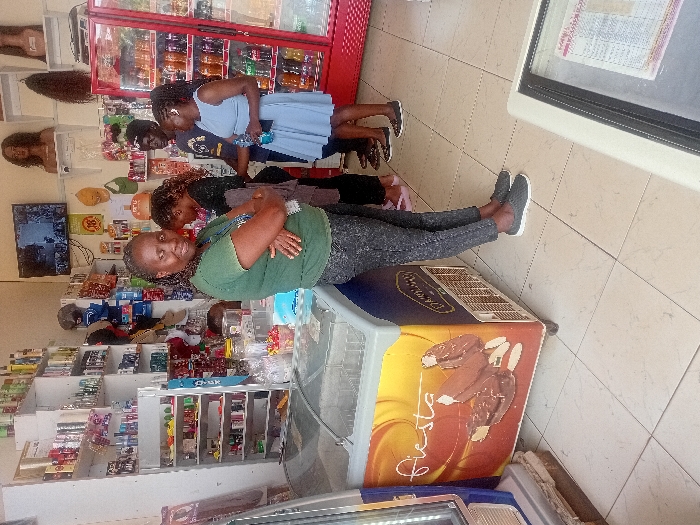 The image depicts the interior of a retail shop located in Karingani ward, Kenya