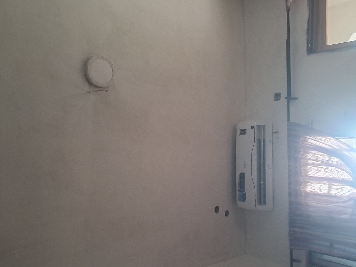 An interior view in Langbasa, Nigeria, depicts a room with an off-white ceiling and wall
