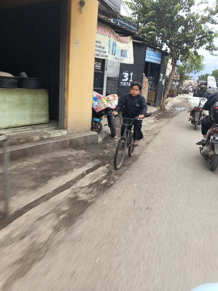 - "A young boy on a dark bicycle is captured in motion on a paved road in Cangkuang Kulon, Indonesia" by FM-rgG523, licensed under CC BY 4.0