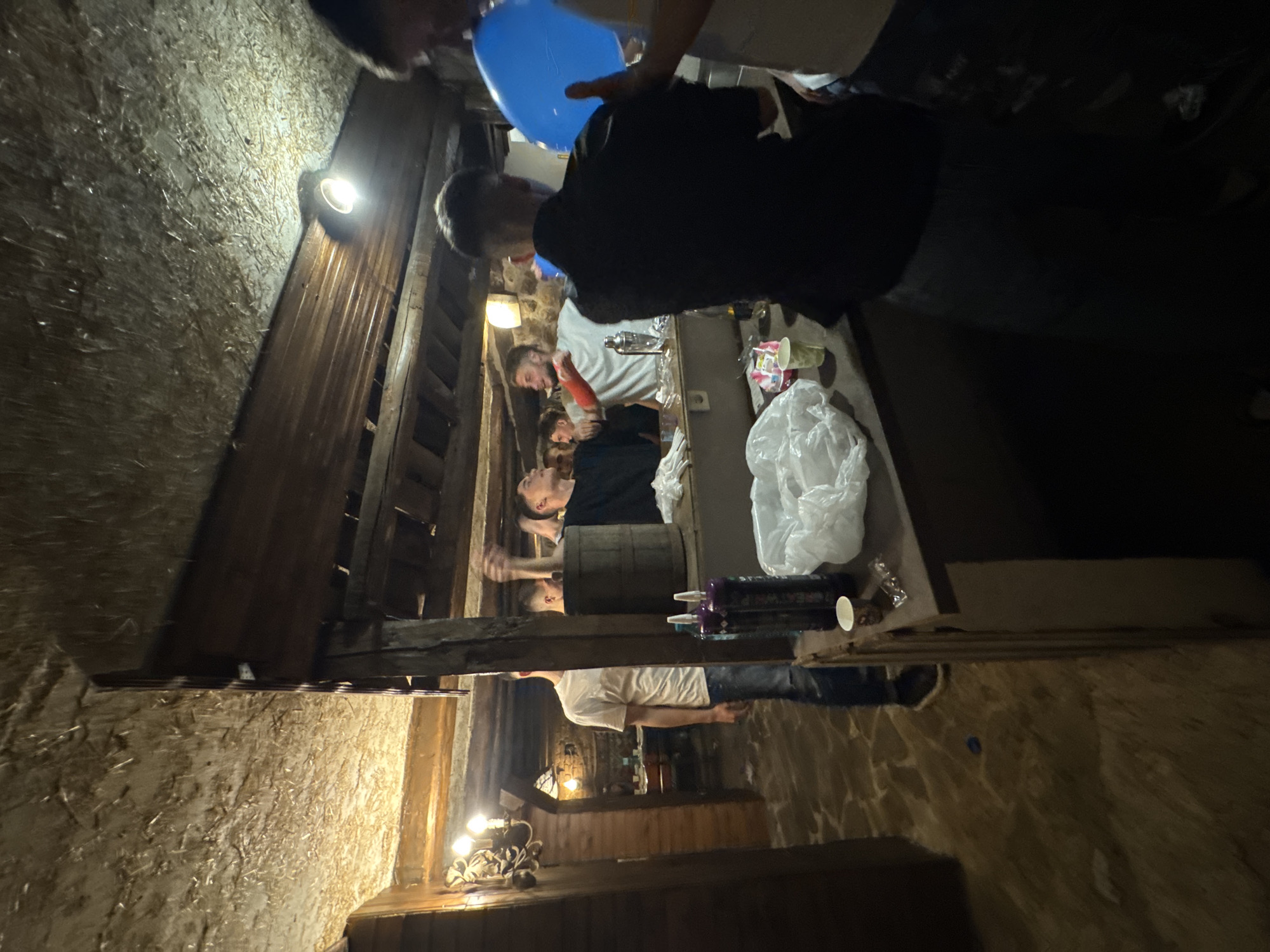 A nighttime scene in what appears to be a cellar or a rustic bar in Gradevo, Bulgaria