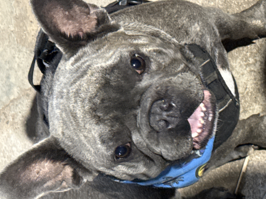 - "The scene depicts a brindle-coated French Bulldog, or similar breed, positioned outdoors in Timaná, Colombia" by FM-QXGvV2, licensed under CC BY 4.0