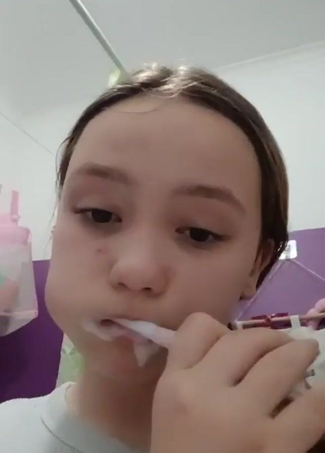 - "A young girl with brown hair tied back in a ponytail is brushing her teeth in a bathroom" by FM-8PLDS2, licensed under CC BY 4.0